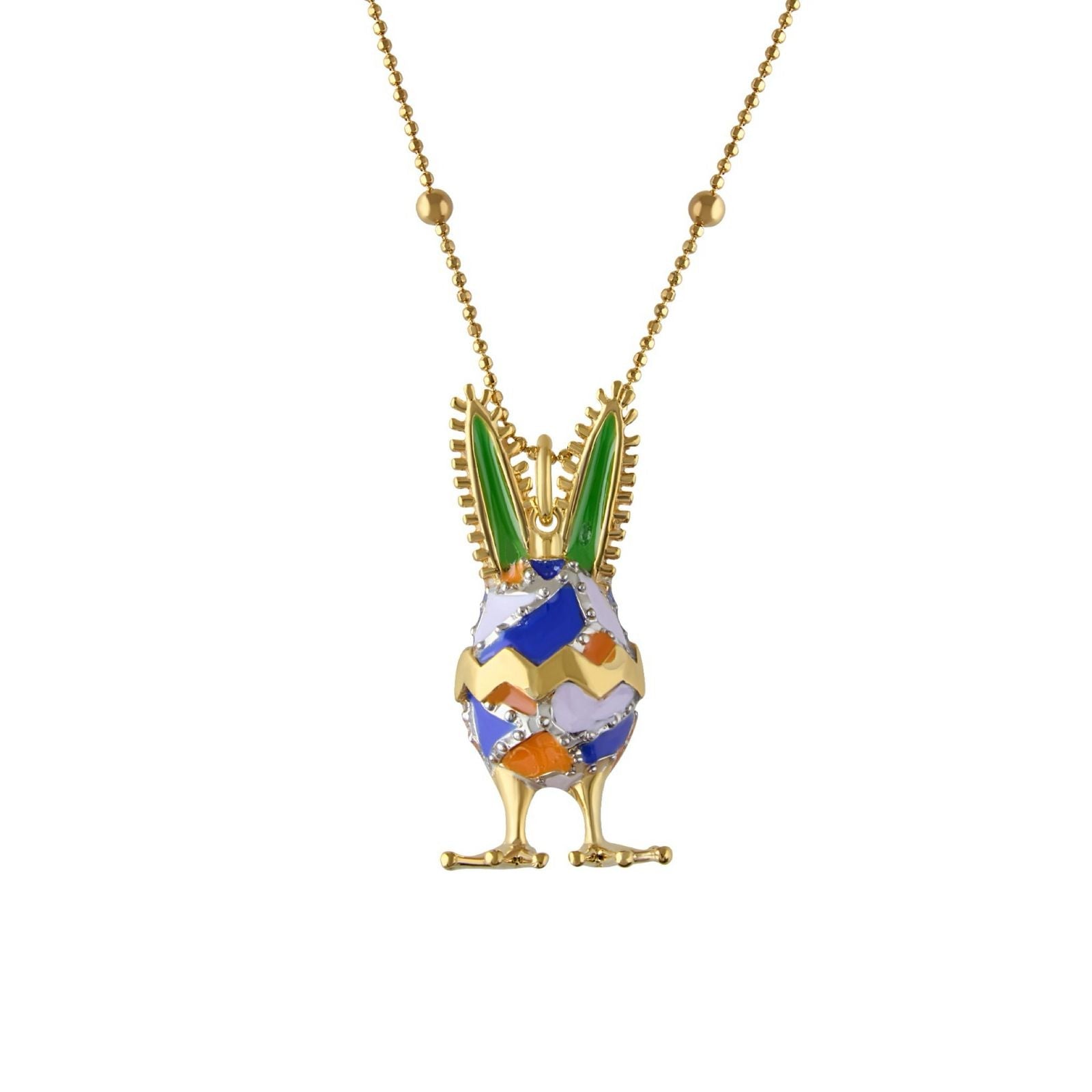 Hechos con plata .925, baño de oro de 14K, esmalte, incluyen cadena, se pintan a mano y en cada serie de producción los tonos de los colores pueden variar.