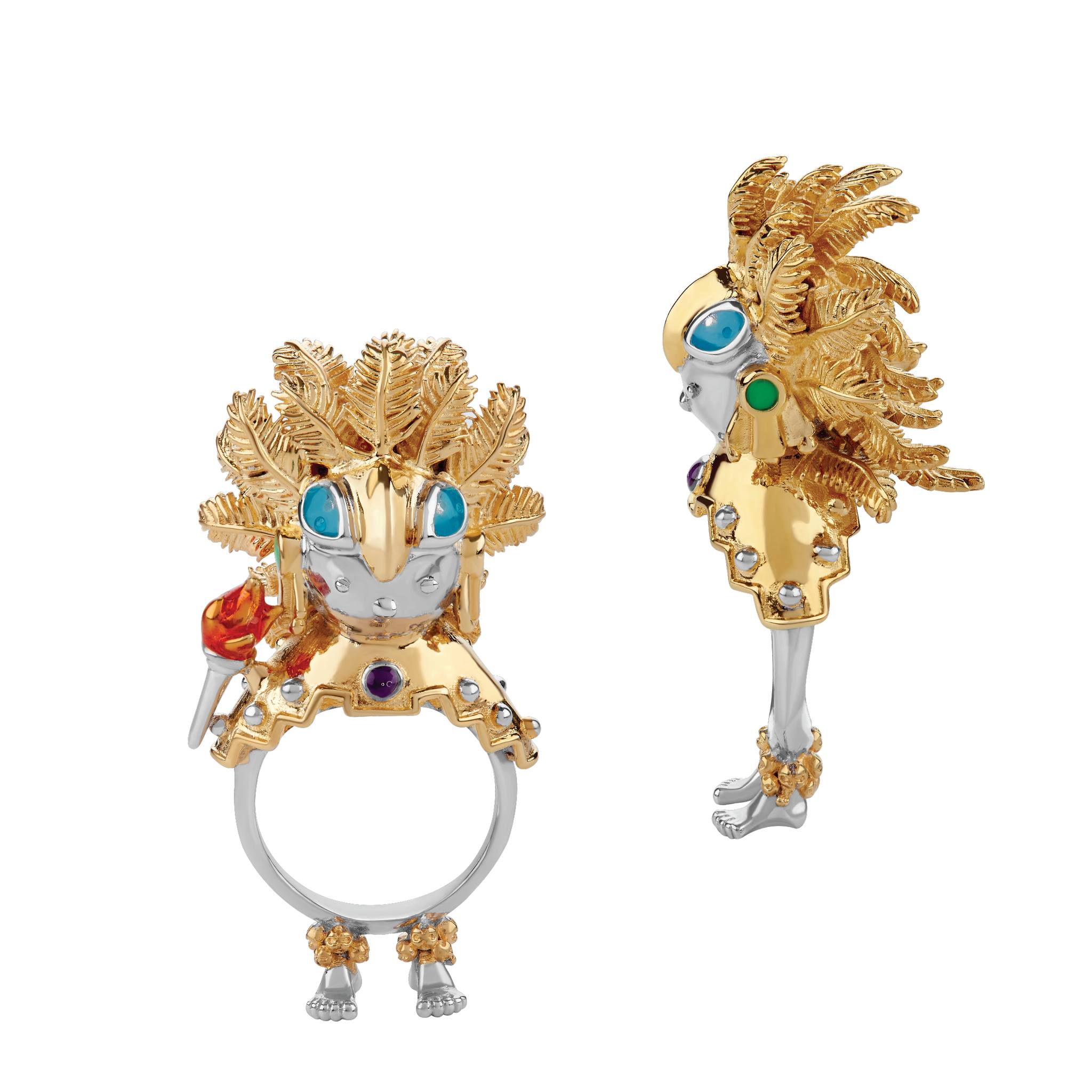 Anillo Popocatépetl, en plata 925 con resina, baño de rodio blanco y oro amarillo.