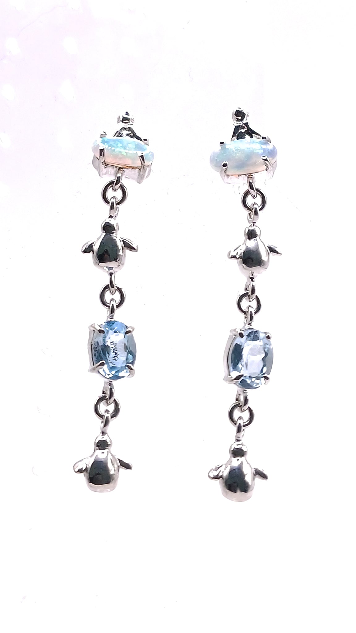 Aretes Plata .925, Baño de rodio blanco, aguamarinas y ópalo.