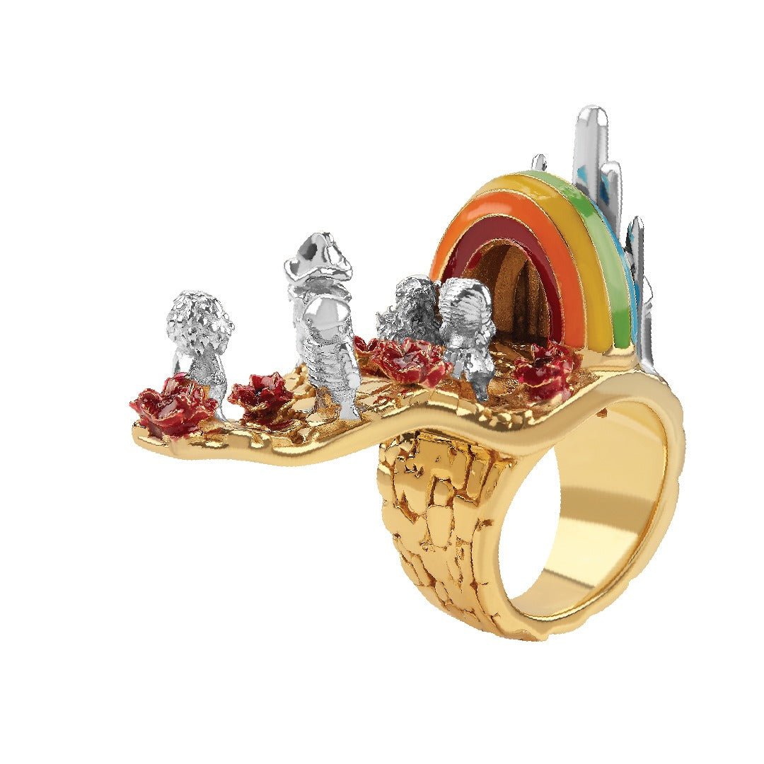 Anillo de Plata .925, Baño de oro Amarillo y baño de Rodio Blanco, Resina.