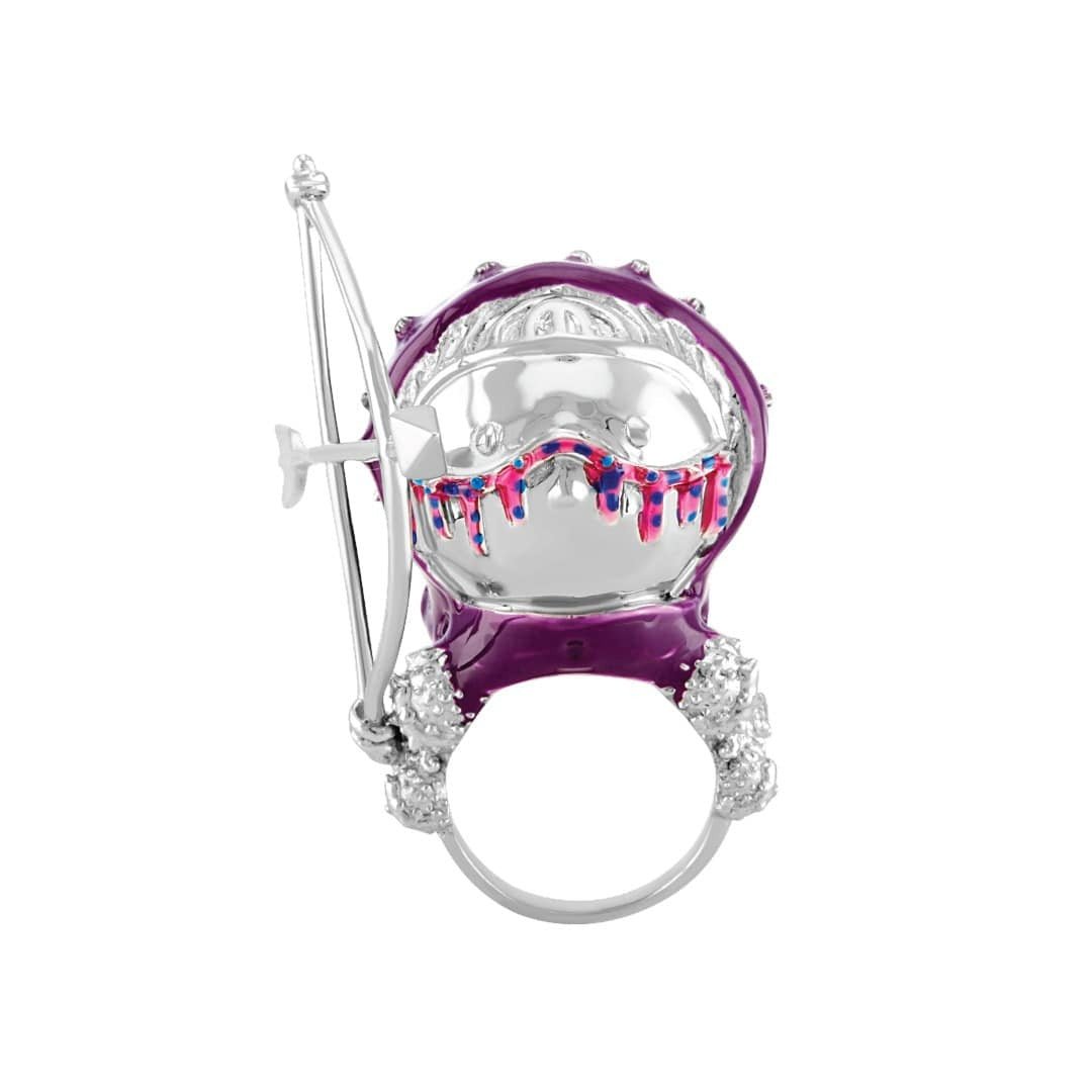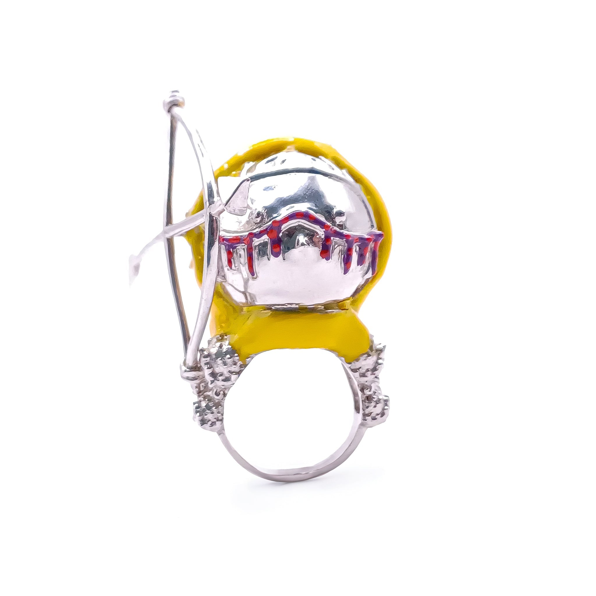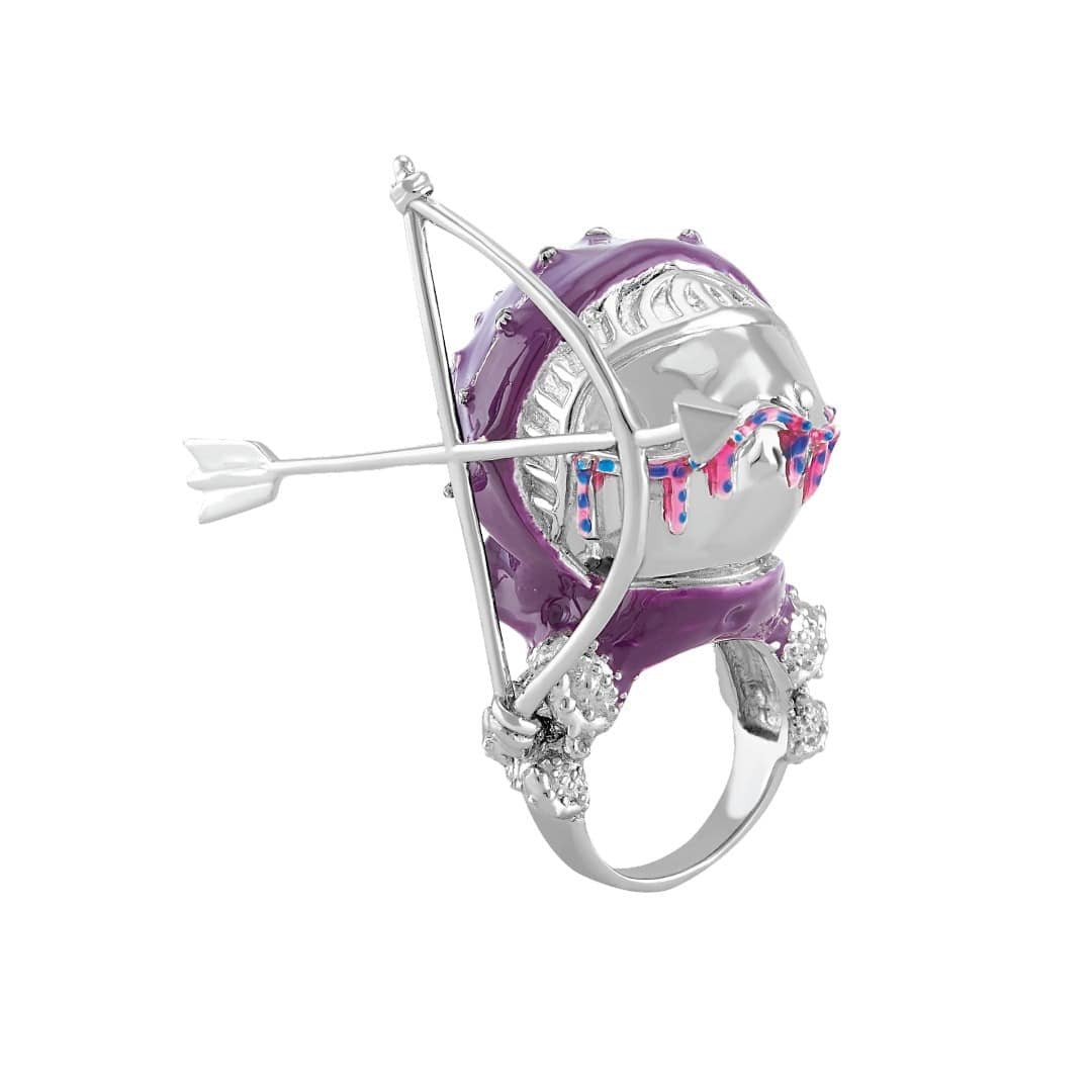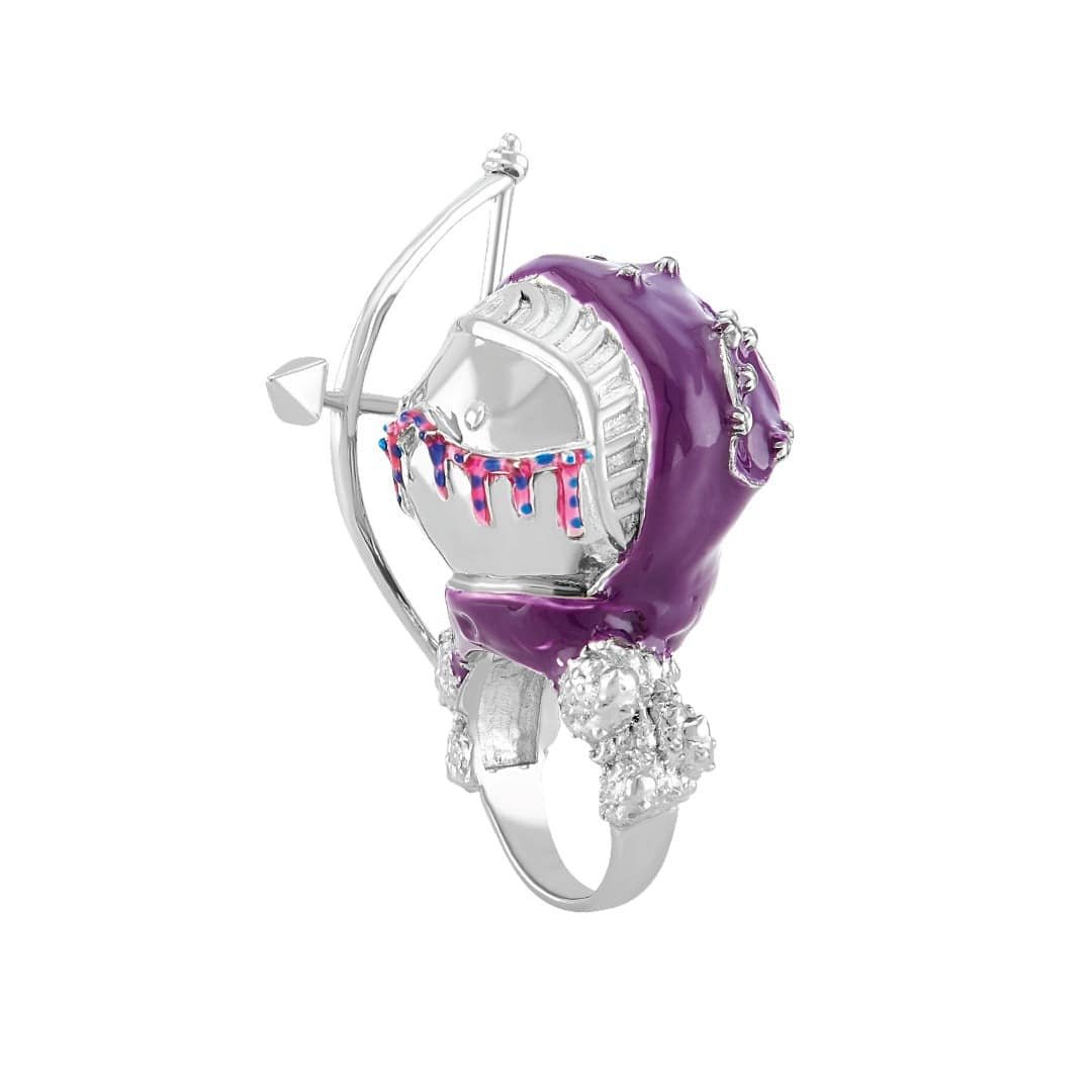 Mujer Nómada "Cazadora", anillo en plata 925, baño de rodio blanco y esmalte.