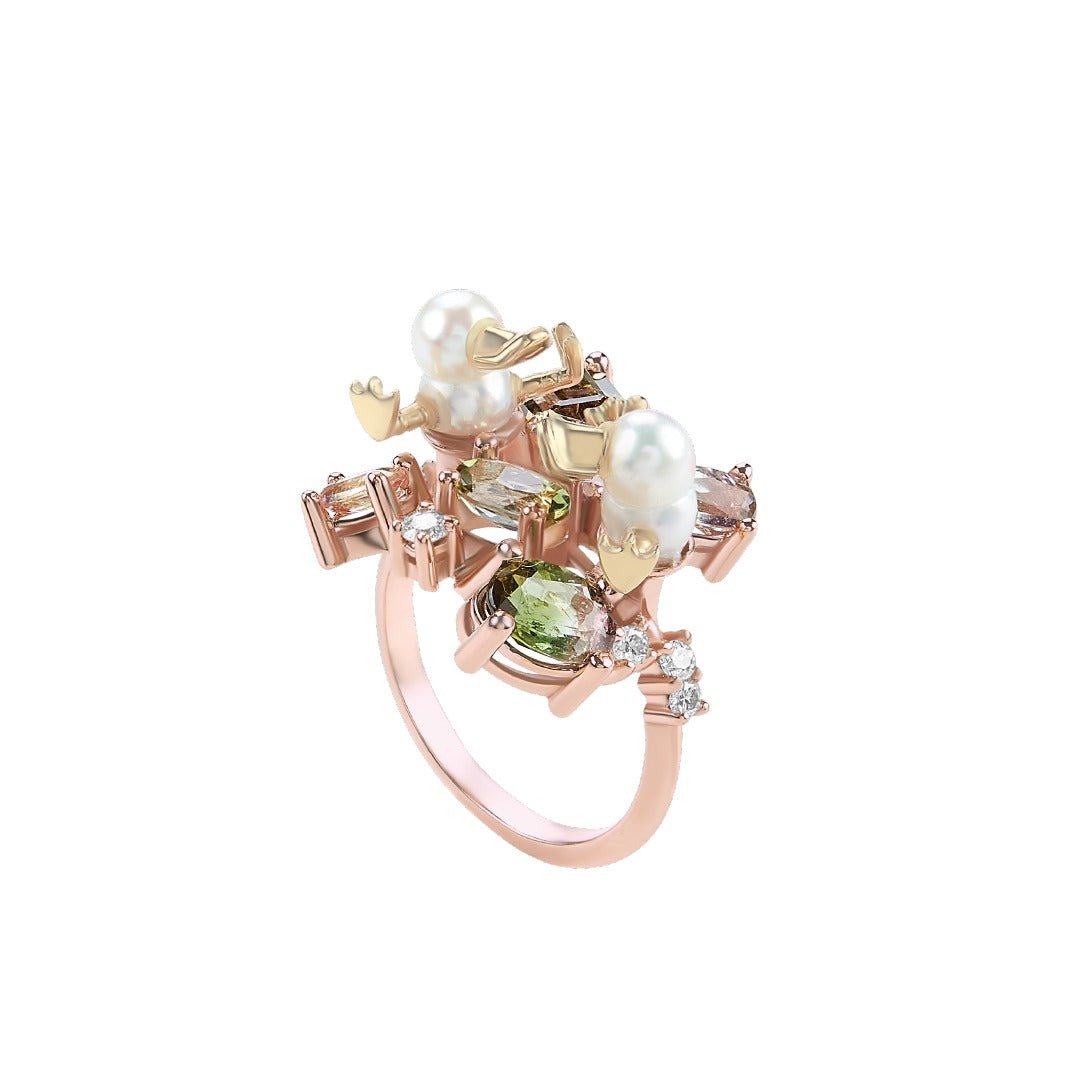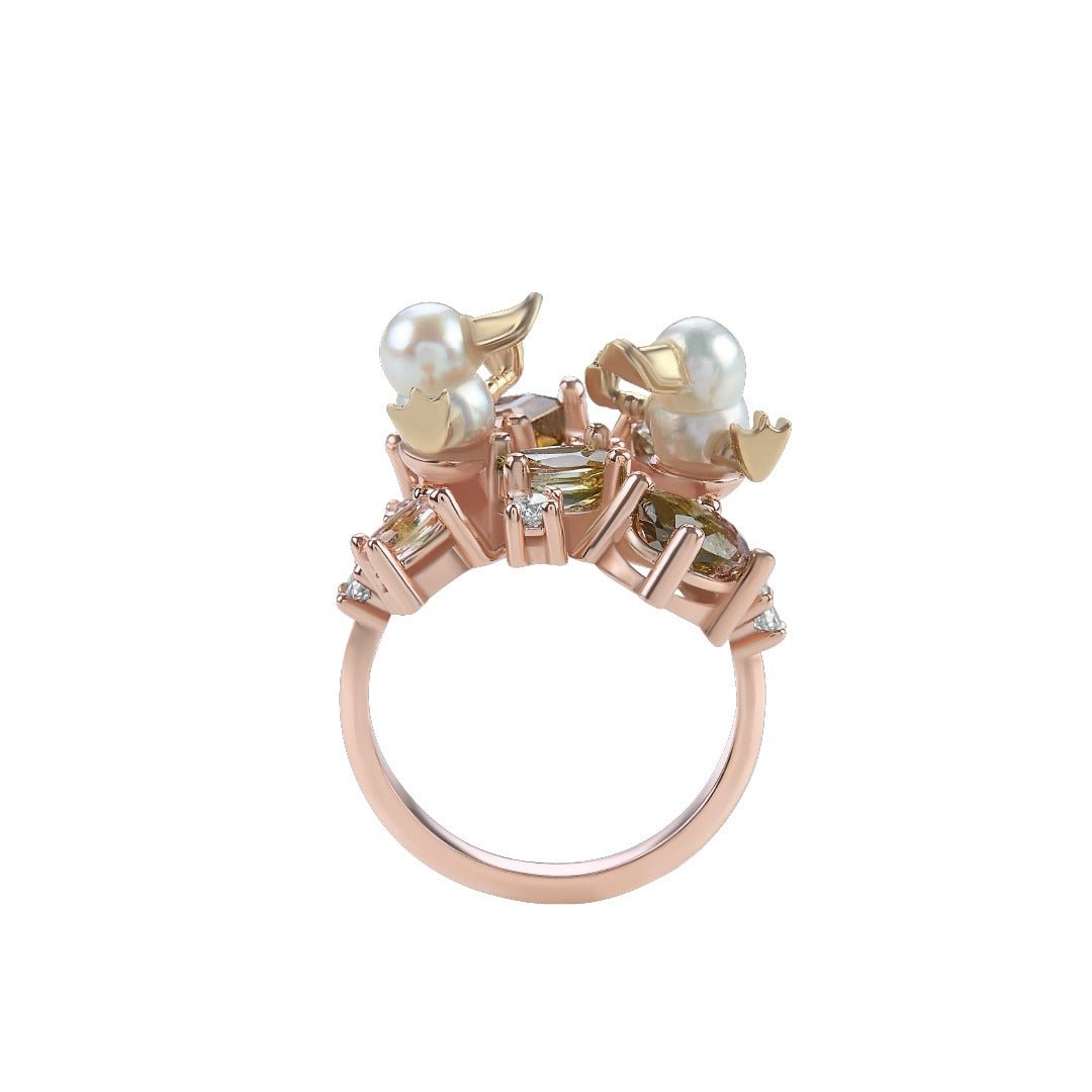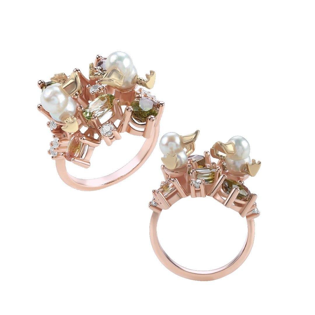Oro 14k Rosa 2.67 ct Turmalinas Sandía, .26 ct diamantes, Perlas Twin Akoya